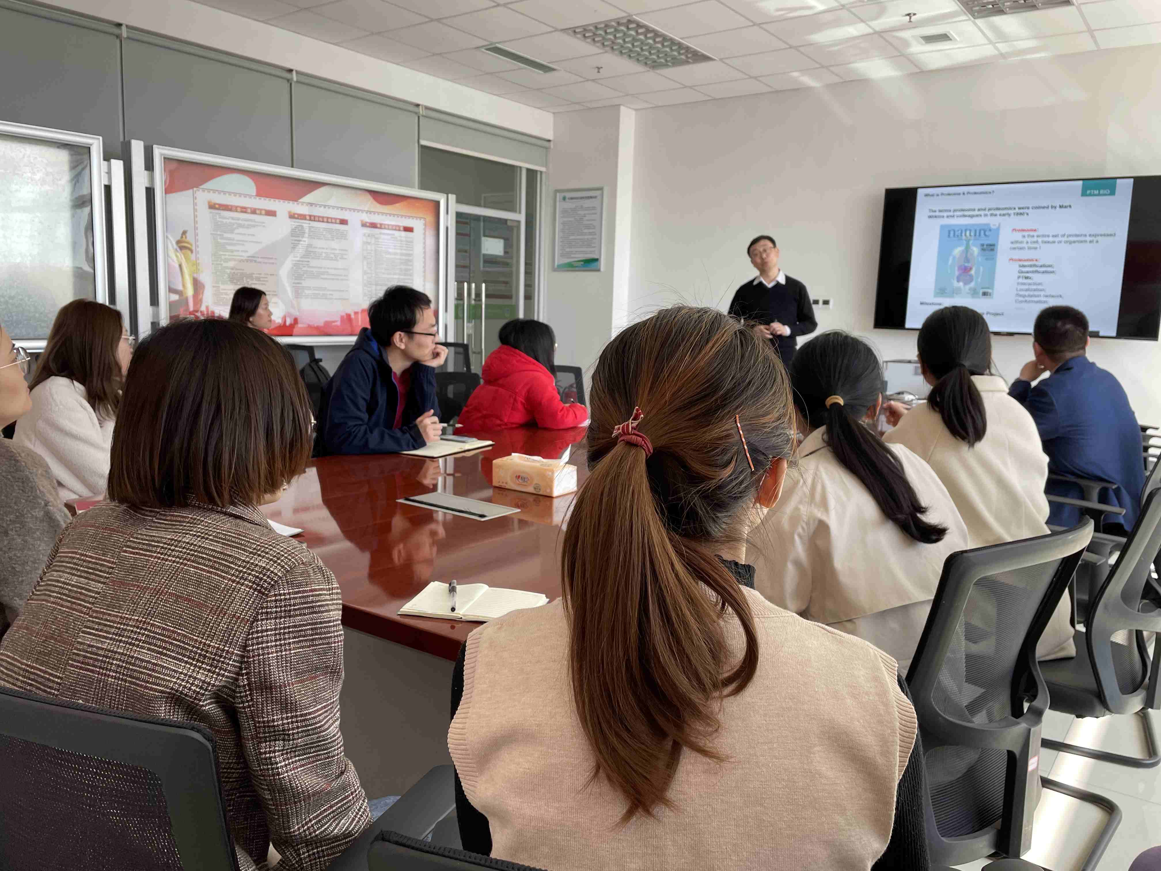 夏雪奎介绍了微生物药物研究室主要研究领域。景杰生物华北大区经理王炳楠做了“基于整合蛋白组及翻译后修饰在生命科学研究进展”的报告。双方在蛋白质组学研究在天然产物挖掘过程中发挥的作用进行了深入的交流。通过交流洽谈,双方在整合资源优势和加强课题共研等方面达成合作意向,将高通量蛋白质组学及翻译后修饰蛋白质组学研究方法应用于天然产物的合成机制研究,促进活性天然产物的生物合成。