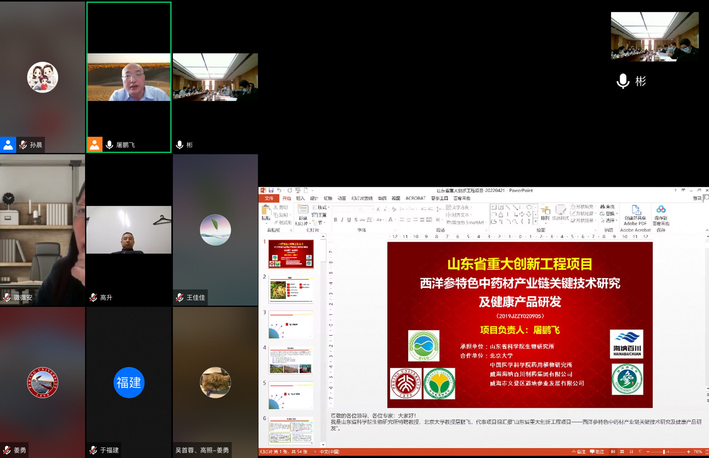 与北京大学、中国医学科学院药用植物研究所、威海海纳百川制药集团有限公司、威海市文登区道地参业发展有限公司共同承担的“西洋参特色中药材产业链关键技术研究及健康产品研发”项目顺利通过综合绩效评价。