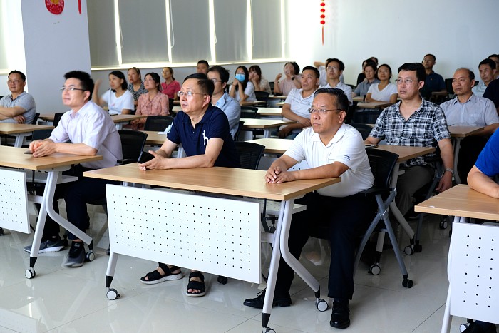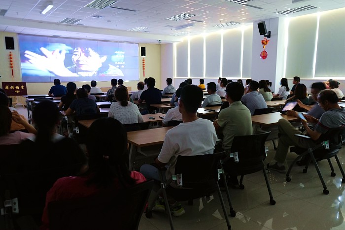 二楼学术报告厅集体观看红色电影《沂蒙红嫂俺的娘》,并开展“学习百年党史、传承沂蒙精神”主题党日活动,本次活动共有60余名职工参加。