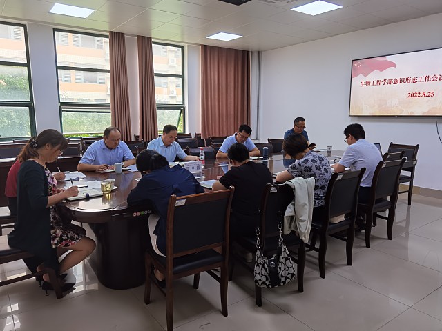 8月25日,生物工程学部意识形态工作会议在长清校区食工楼B206会议室召开。会议由学部党委书记张召宁主持,学部全体党委班子成员参加会议。