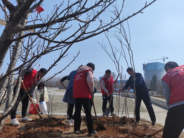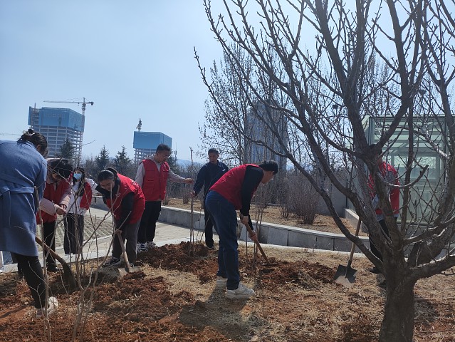 3月12日下午,在我国第46个植树节来临之际,好色tv 组织义务植树活动,职工学生积极参与,共建绿色彩石校区。