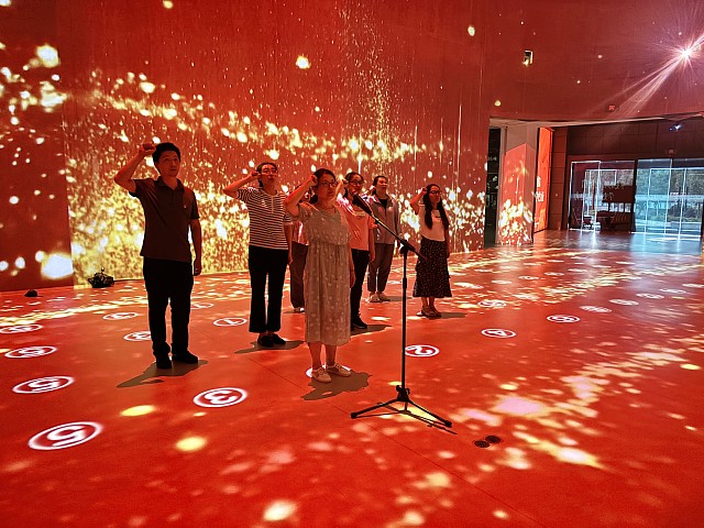 历城区党史教育馆以“辉煌一百年、奋进新时代”为主线,通过照片、文物、影像等,以沉浸式、全景式、交互式、体验式等呈现形式,讲述了我们党的百年奋斗光辉历程和取得的伟大成就。大家在声光电的交融中,沉浸式体验了中国共产党成立、开国大典、第一颗原子弹爆炸、新中国成立70周年阅兵等激动人心的辉煌时刻,亲身感受到我们党奋斗百年的艰难与辉煌,聆听了感人至深的革命先辈和英雄模范故事。在沉浸互动中与党的百年厚重历史“对话交流”,在学习感悟中汲取奋进力量。