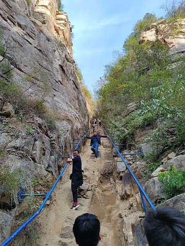 位于济南龙鼎大道南首的龙洞风景区,拥有着丰富的自然资源和人文景观。这里山清水秀林壑优美,连绵起伏的山峰,草木遍布,满眼皆是绿色。景区核心区藏龙涧,山路崎岖不平,两侧是陡峭的悬崖峭壁,是市区里独特的喀斯特地貌。尤其在“一线天”景观处,两侧悬崖壁立千仞,是众多游客进山必打卡点。活动中,大家互相鼓励,在感受登山快乐的同时,也充分展现出团结协作和努力拼搏的集体主义精神。
